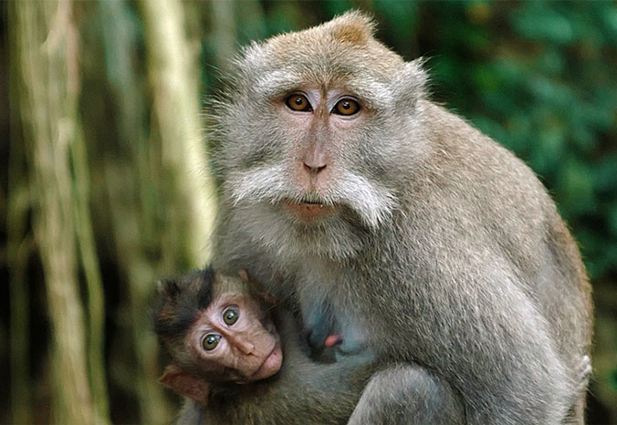 食蟹猴 cynomolgus macaque(Macaca fascicularis)体型较恒河猴小,性格温顺,全年可繁殖,生命周期长,被广泛应用于毒理学、药理学、生理学、生殖生物学以及慢性病模型等领域的研究,被认为是一种重要的实验动物。