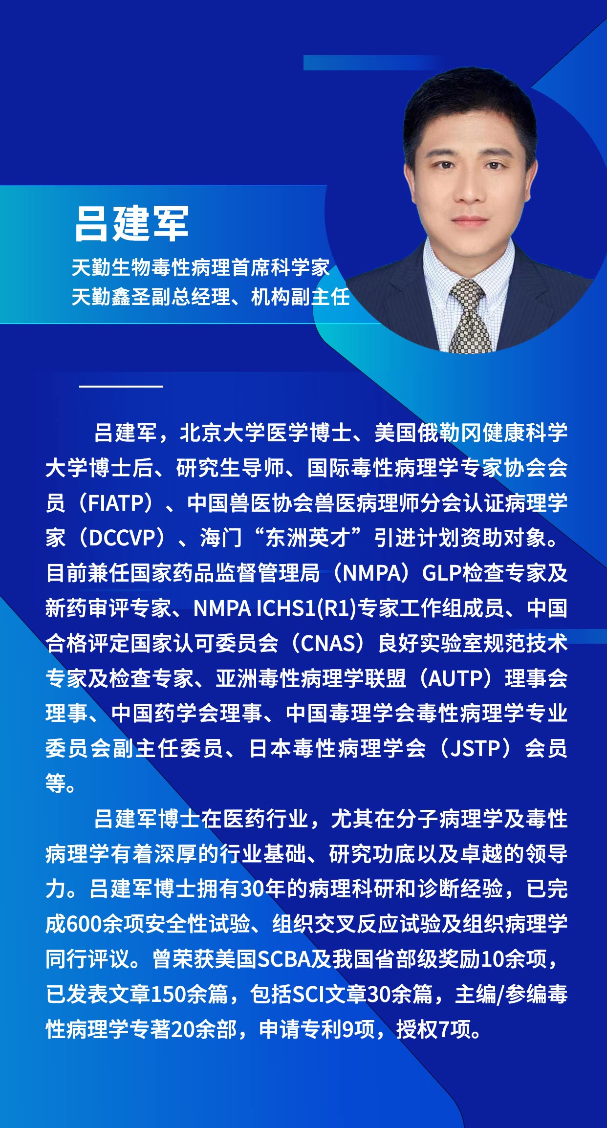 Bevictor伟德任命吕建军博士为公司毒性病理首席科学家,天勤鑫圣副总经理、机构副主任